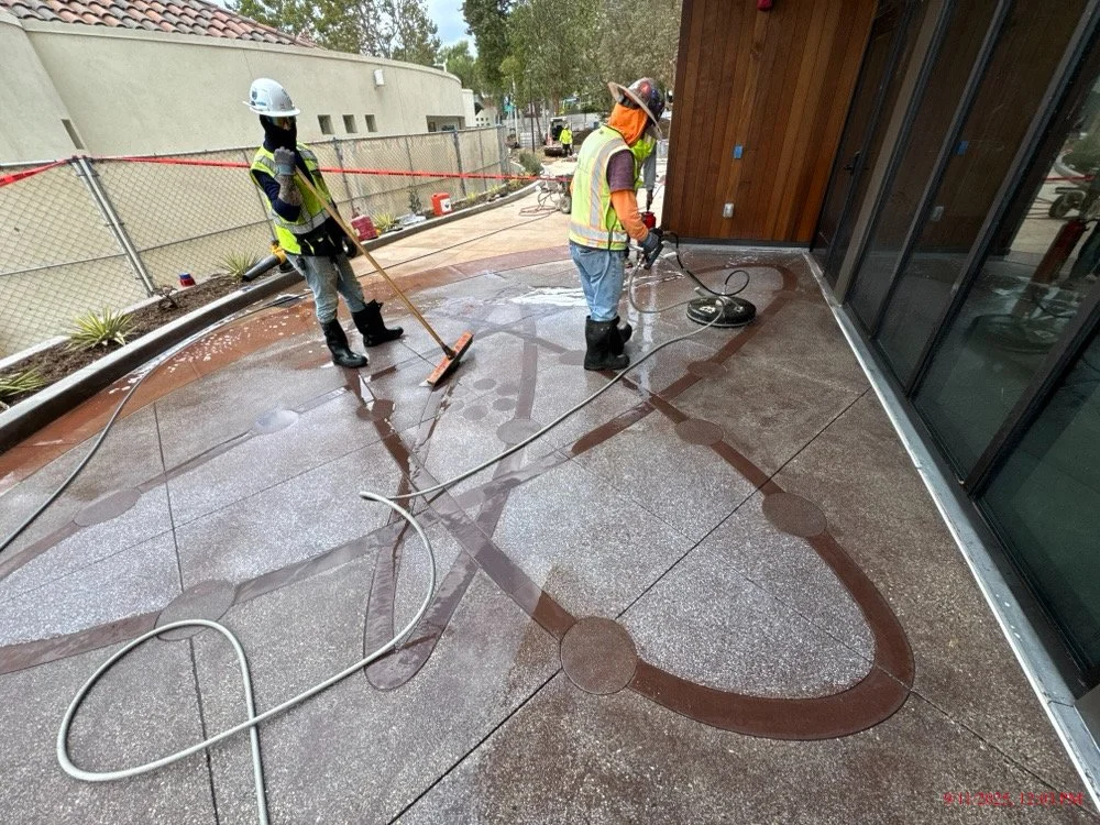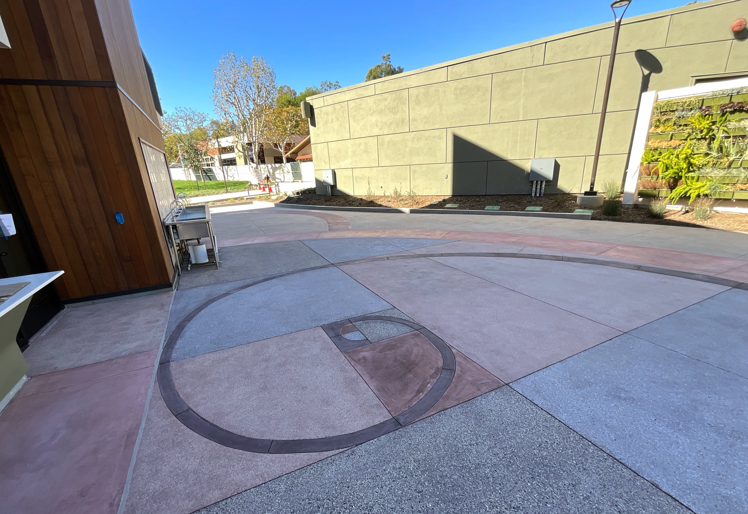 HBA successfully created and poured concrete designs of the Fibonacci spiral and atom seen below. The design consists of various integral colored concrete with multiple finishes which include; topcast, seeded aggregate, and hard trowel finish.
